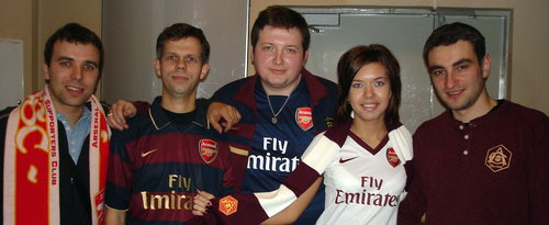 Жаль, что руки у Фабрегаса были заняты, и он не смог водрузить себе на шею предмет нашей атрибутики. Испанец сердечно поблагодарил нас и передал привет.